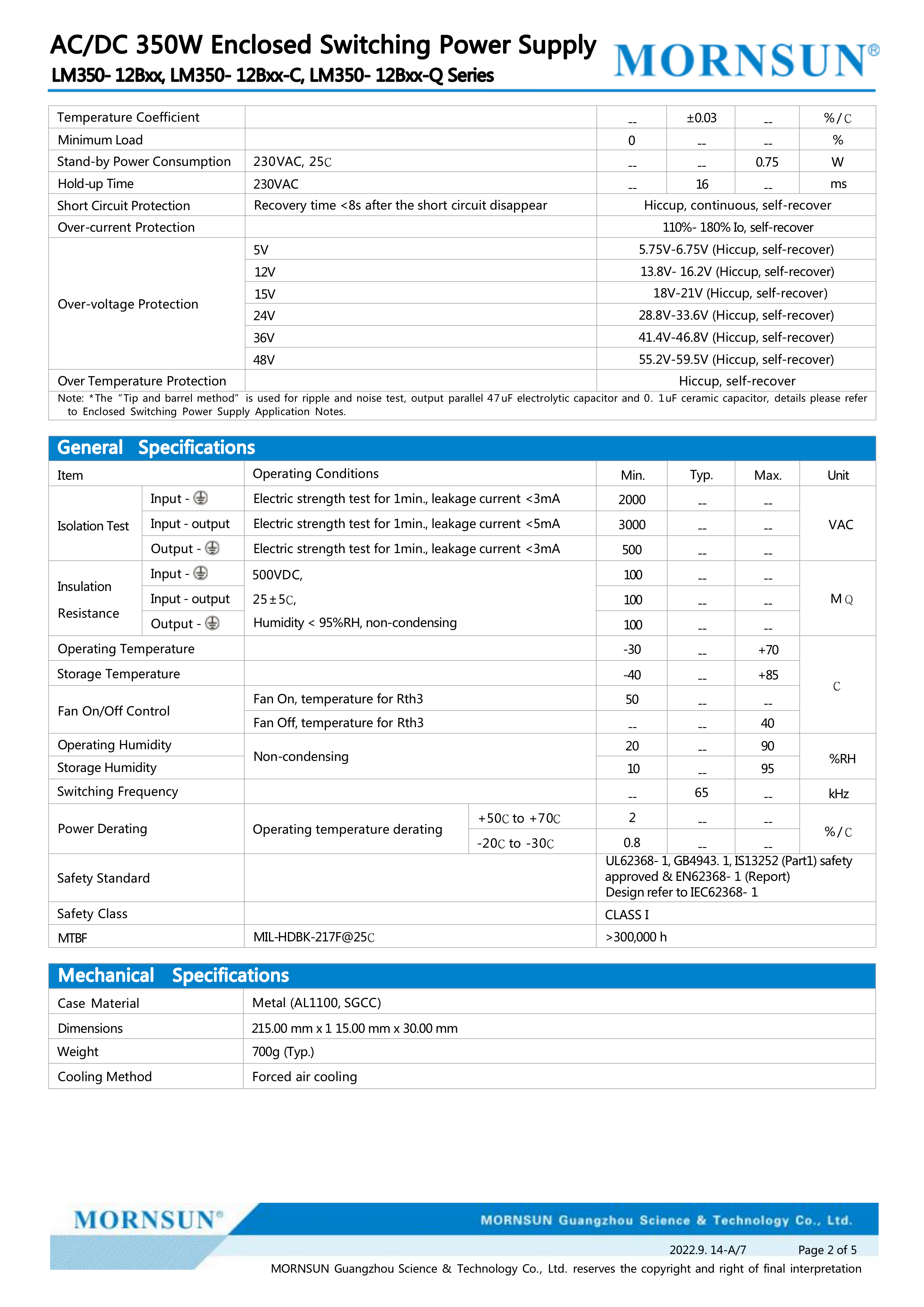 Mornsun 350W AC to DC Switching Power Supply
