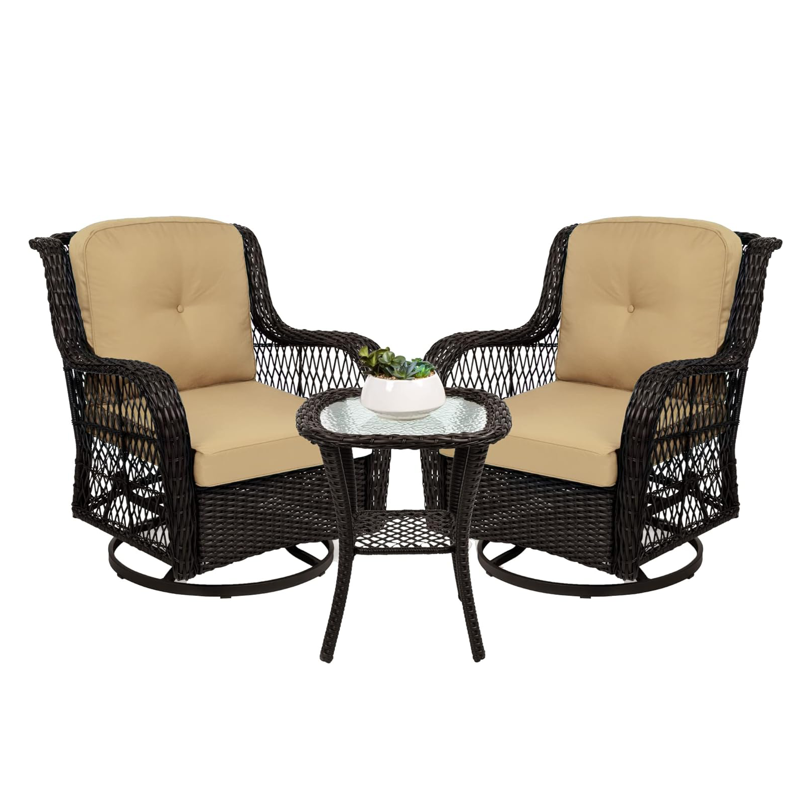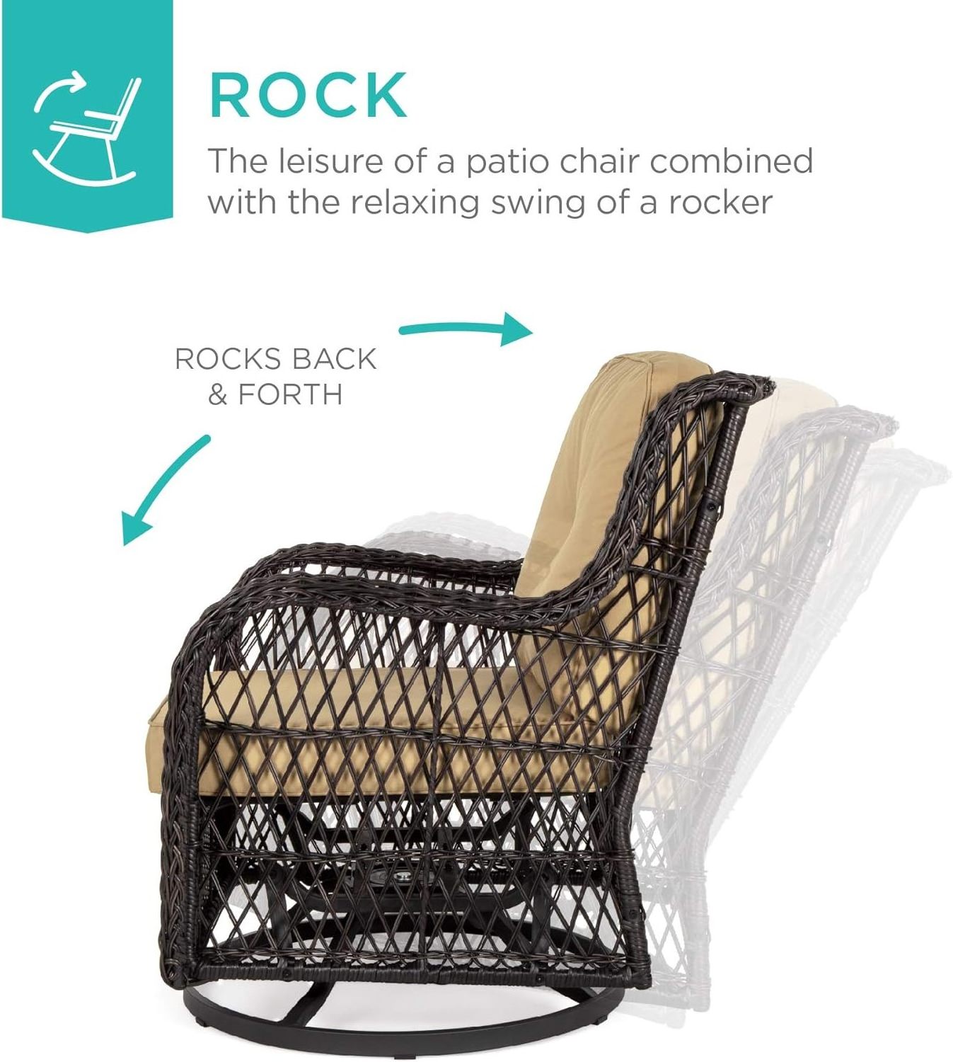 Best Choice 3-Piece Outdoor Wicker Patio Bistro Set 2 360-Degree Swivel Rocking Chairs Tempered Glass Top Side Table Gardens