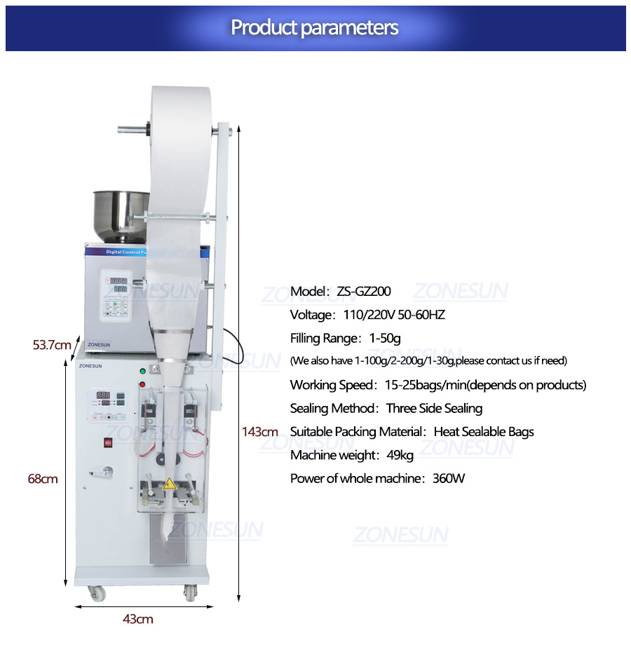This product has been excellent engineers carefully study design, the use of microcomputer control of optical technology, high accuracy, fast, good quality, solve the traditional tea packaging tedious process. An automatic dosers several labor equivalent amount of power production and tea shop is a good helper.