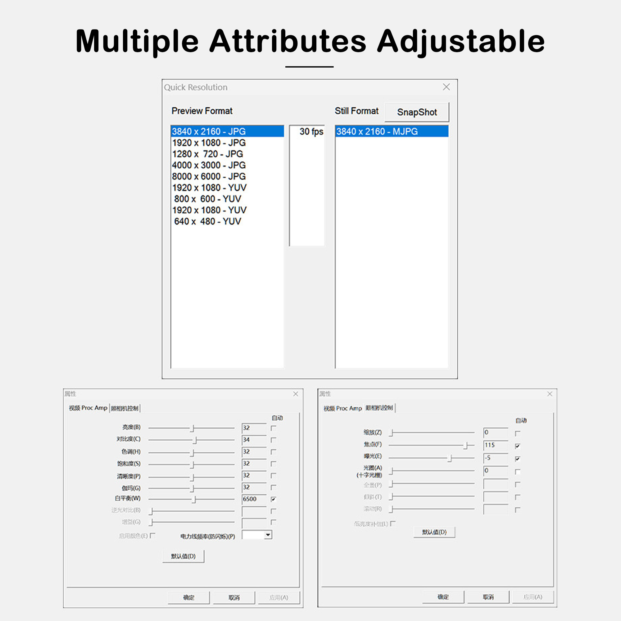MJPEG 2592x1944@30FPS MJPEG 3840x2160@30FPS MJPEG 4000x3000@15FPS MJPEG 8000x6000@5FPS YUY2 640x480@25FPS YUY2 800x600@25FPS YUY2 1920x1080@6FPS |