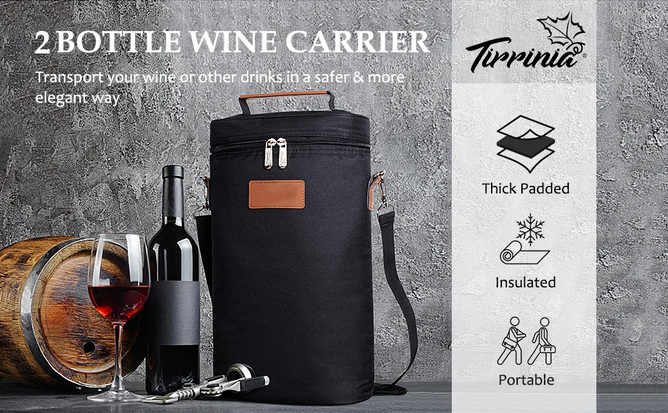 * INSULATED & PADDED FABRIC - PU thermal insulated material and 5mm PE foam padding protect your bottles of wine from external collision, keep 2 bottles of wine intact and well chilled for hours.