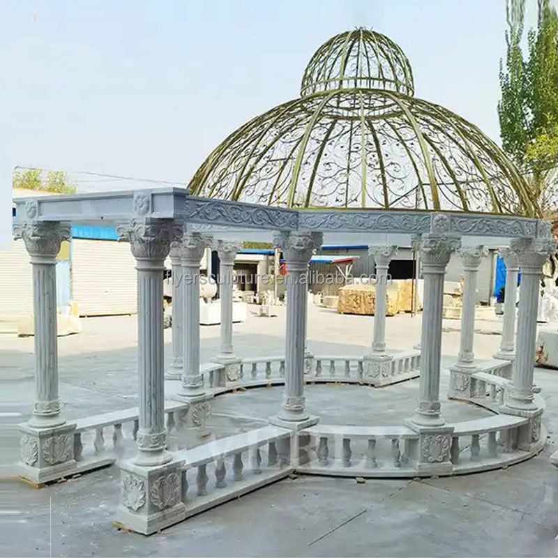Outdoor Decoration Beautiful Modern Stone Carve Wedding Gazebo White Marble Column Gazebo Pavilion Garden Large Marble Gazebo