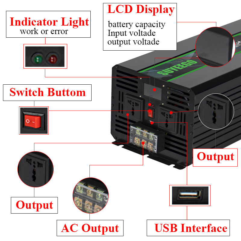 Pure sine wave power inverter allows motors to run cooler, last longer and provide very clean power that is same quality with State Grid . Devices such as air conditioner, Freezer and most medical equipment require a pure sine wave inverter to run.