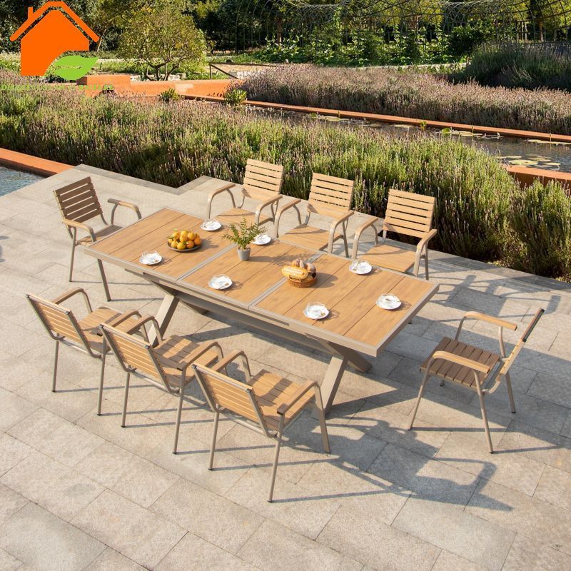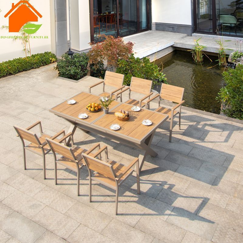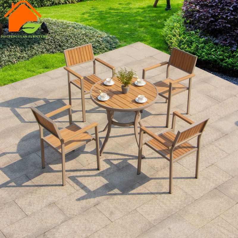 Modern luxury poly wood dining table and chairs set French Cafe Restaurant Hotel