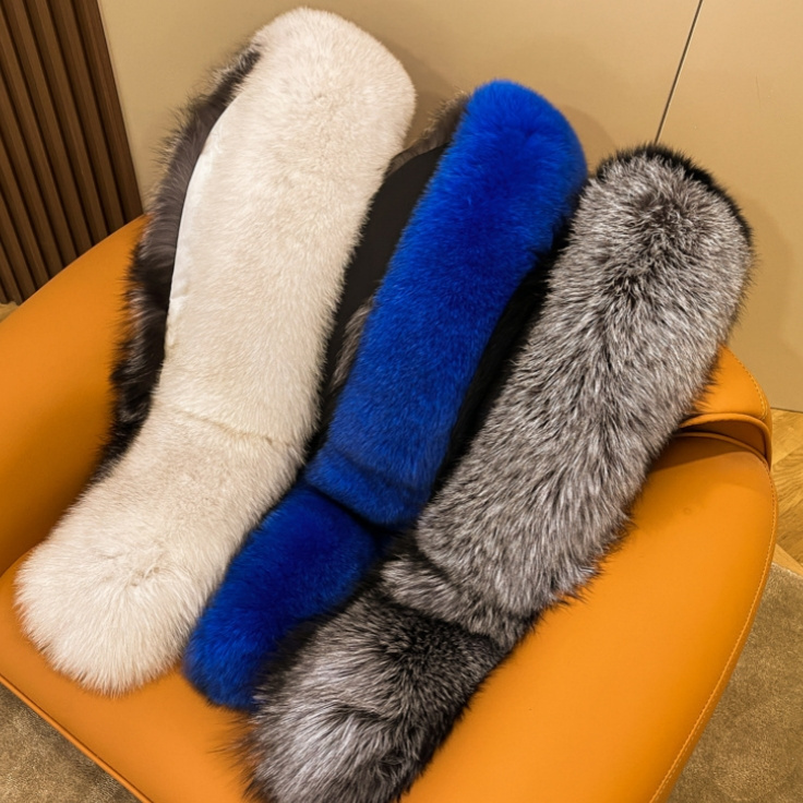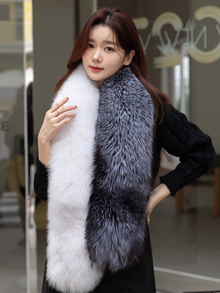 Winter Genuine Fur Scarf Women Real Silver Fox Fur Collar Neck Scarf Warm Fluffy Shawl Ladies