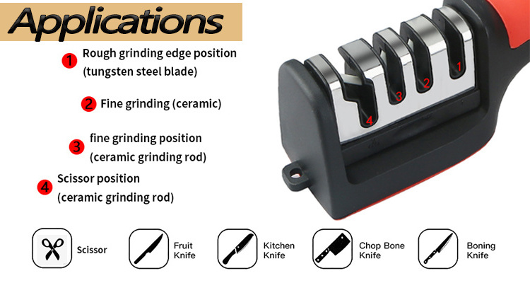 4.Our knife sharpener is made of premium diamond abrasives, tungsten steel, ceramic and solid ABS plastic