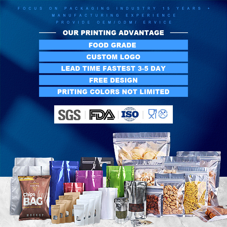 Matte Custom Printed wholesale colorful Small Aluminum Foil food packing bags with zip lock