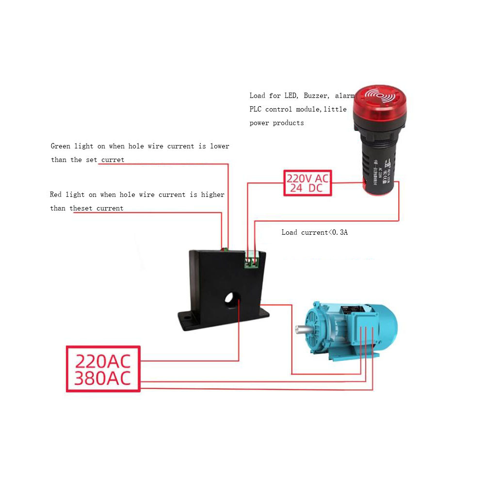 LED Indication: The action current is 0-100A AC, which can be adjusted by the potentiometer. The LED indicator light can easily and intuitively indicate the working status of the switch.