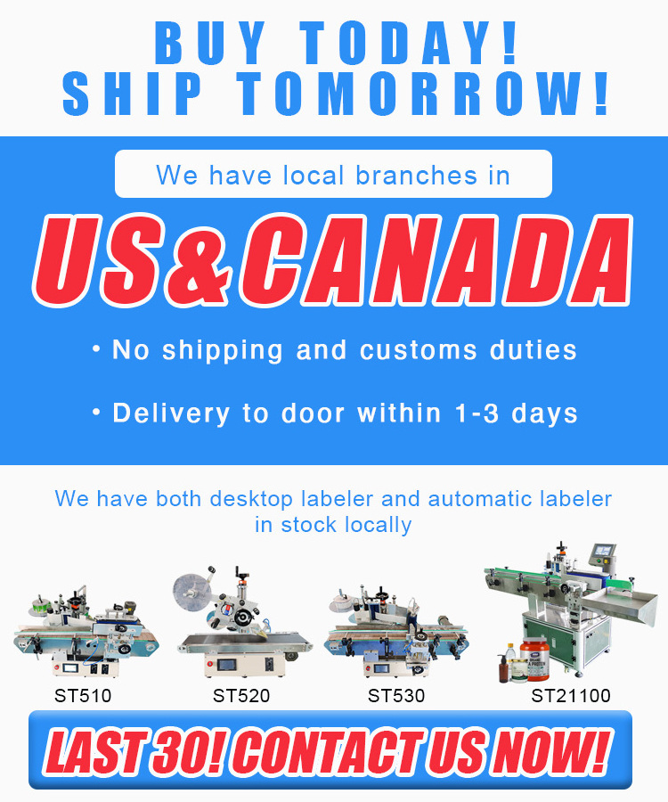 We have a stock of desktop labeling machines in the United States and Canada. It can be delivered to your door within 1-3 days; we also have other models in stock in China. It can be delivered within 7-15 days.