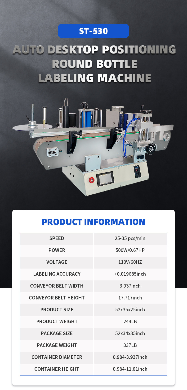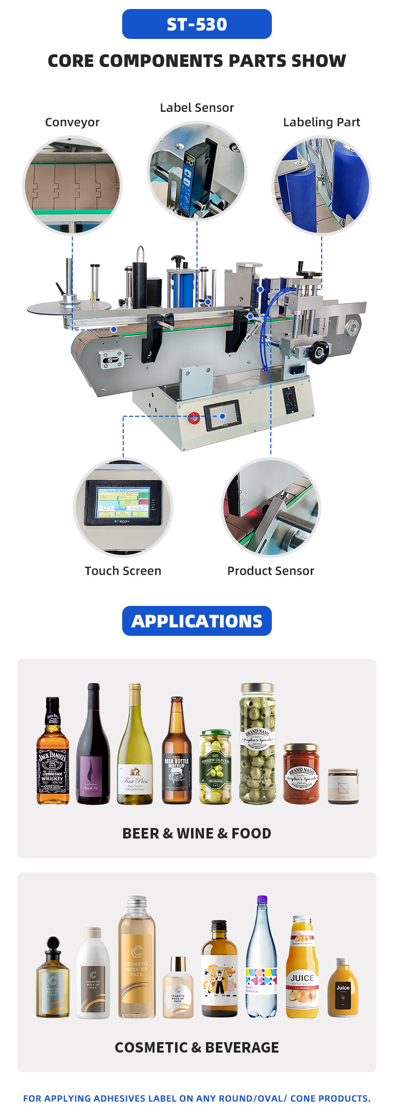 Pls supply us your products and label size (the photo of products with label on it is rather helpful), then I will suggest you the suitable machine for reference.