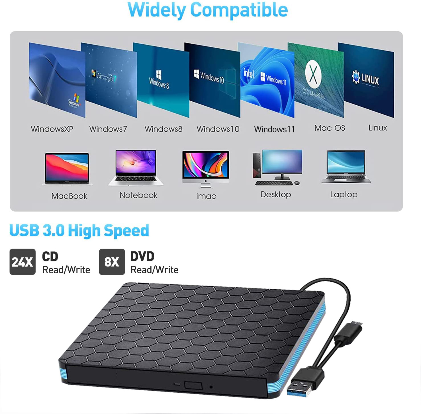 With the driver design integrated with USB3.0 and Type-c dual-interface data lines, ultra-thin laptops without USB ports can work normally. The machine can be used on any laptop or desktop computer