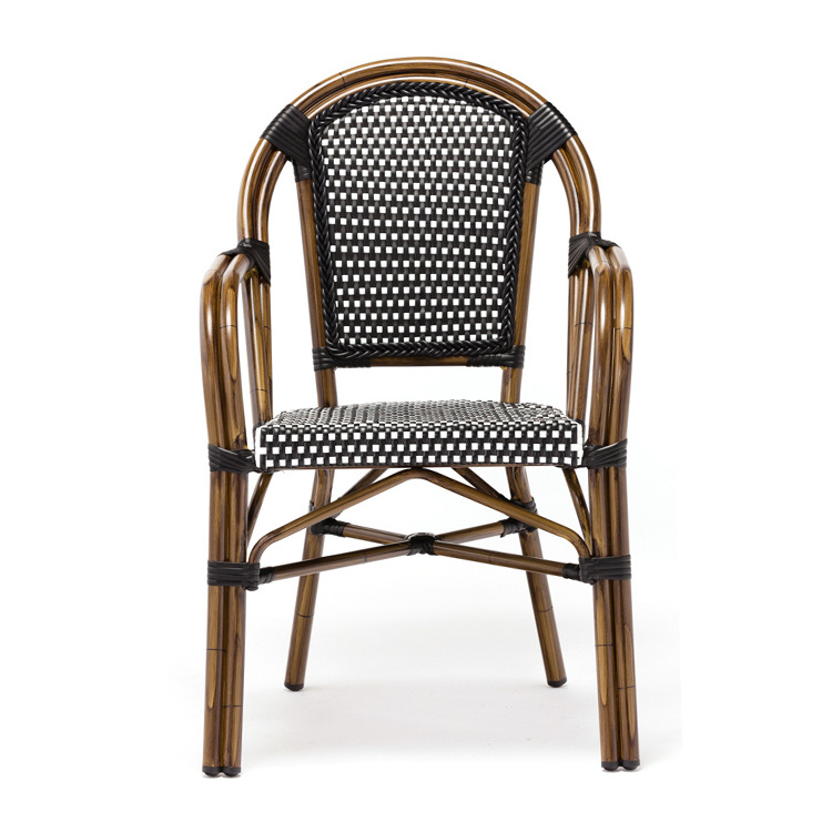 French Style Hotel Restaurant Aluminium PE Natural Brown Rattan Seat Garden Wicker Chair Outdoor Furniture