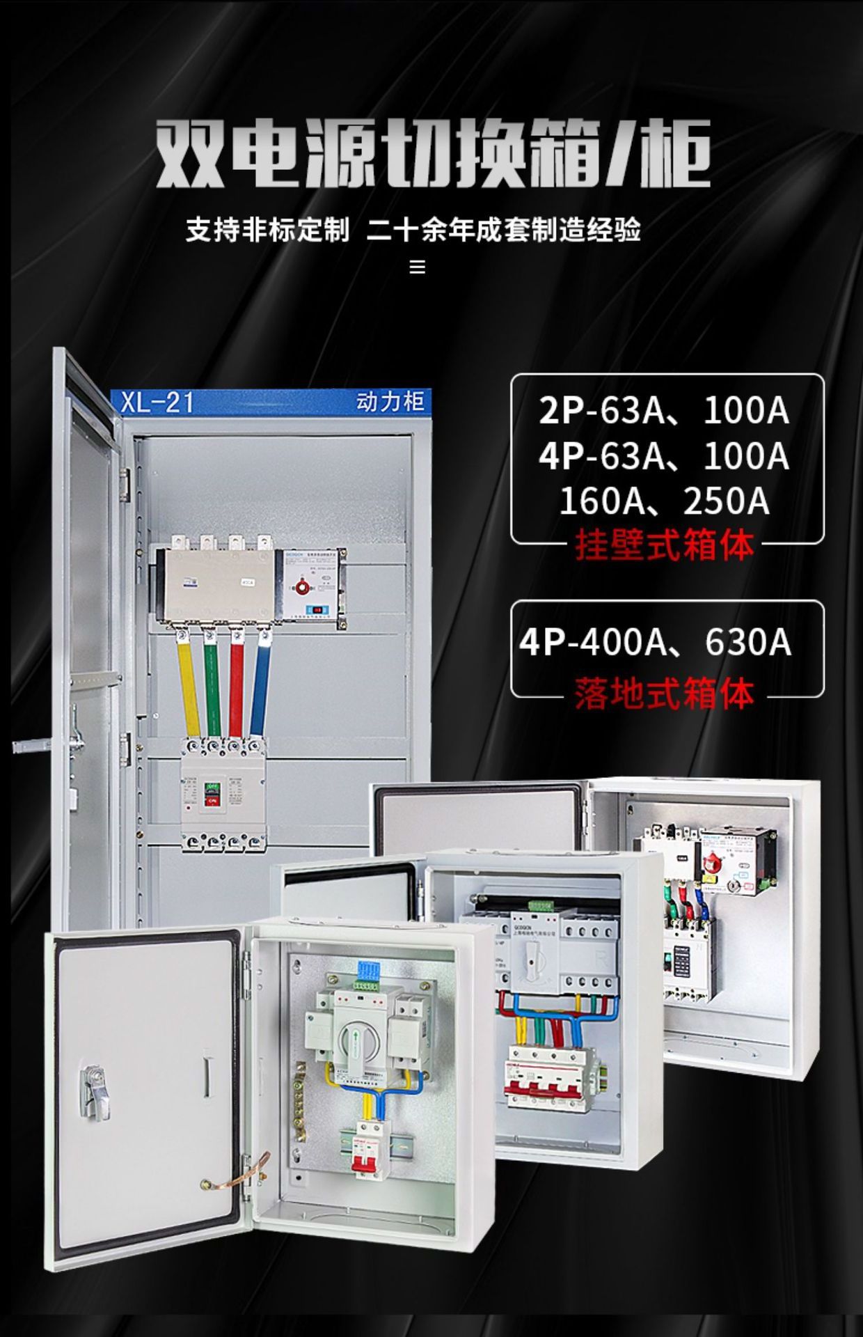 It’s suitable for 3 phases 4 wires (or 1 phase 1 wire) dual power grid with AC 50/60Hz,
