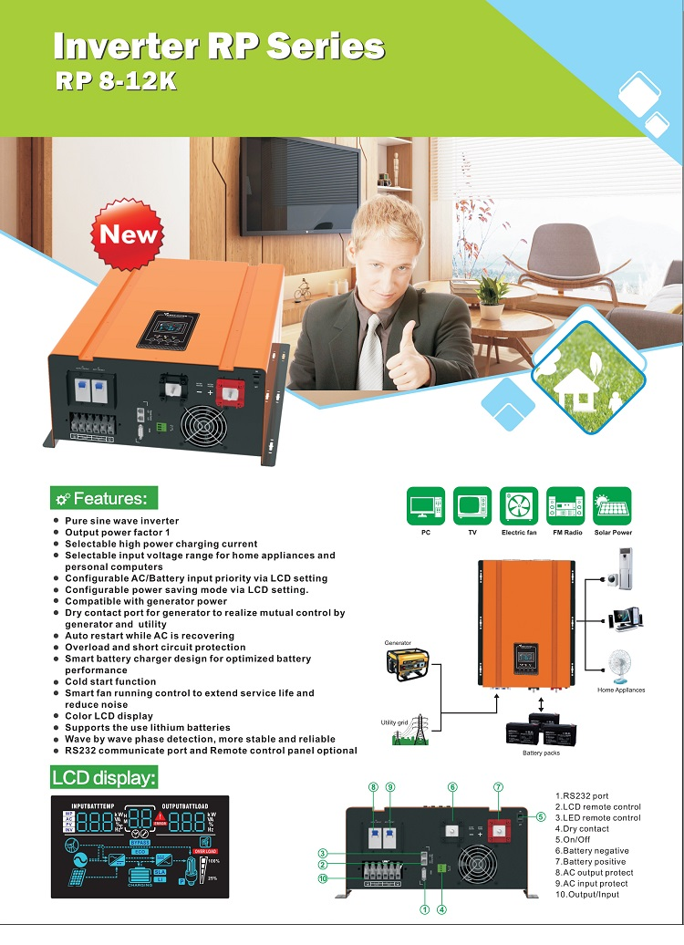 Low Frequency Inverter Charger Pure Sine Wave Rechargeable Inverter 48V 96V 220V 8000W 10KW 12KW DC To AC Power Inverter 1000W