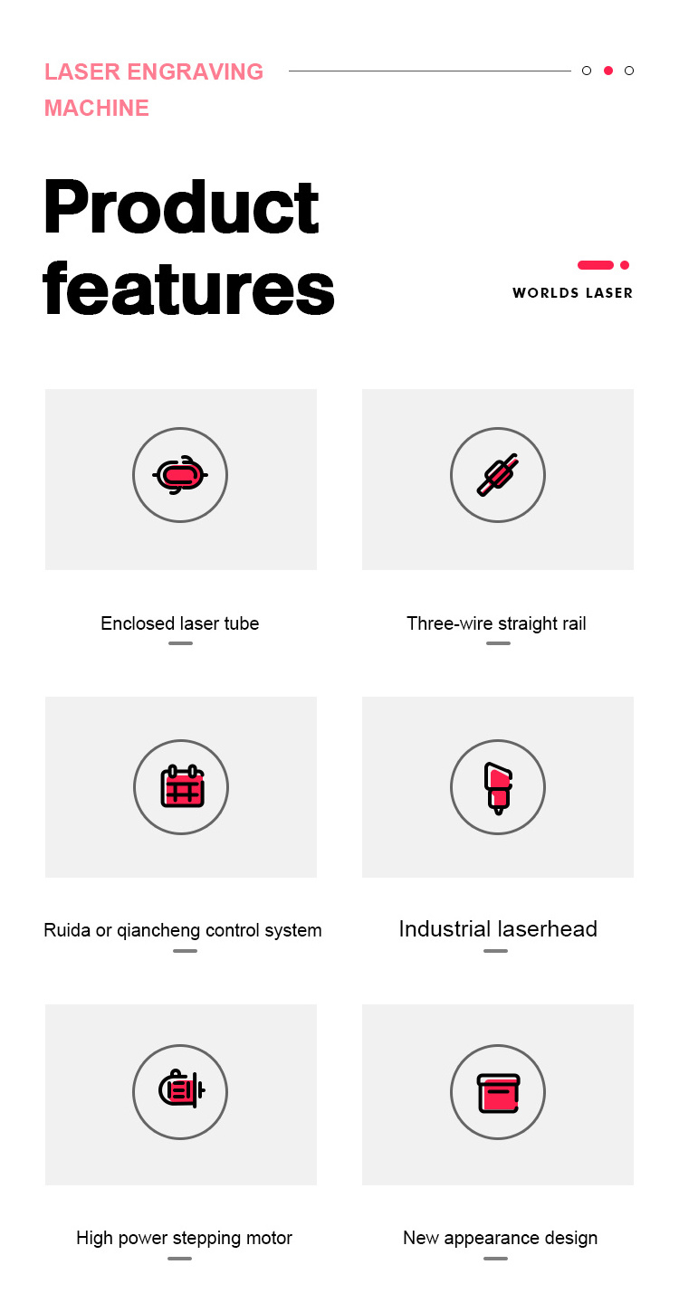Widely used for carving and cutting almost all non-metallic materials.The diameter of the beam and spot is usually less than 0.5mm, which saves materials in the processing process;The precision and meticulous processing precision can reach 0.02mm