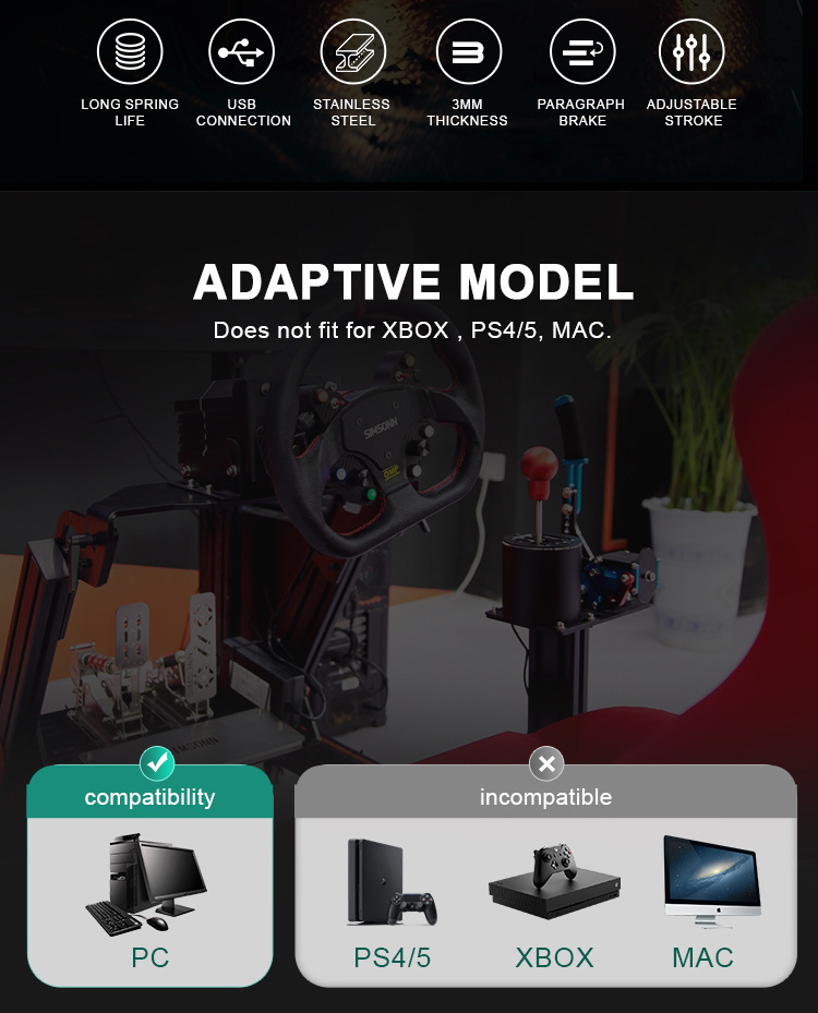 -Compatible with all Steam ESR (Extreme Sim Racing) wheel stands and cockpits.