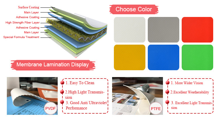 You are free to choose different membrane structural materials, its life varies with different surface coating,usually up to 12-50 years.