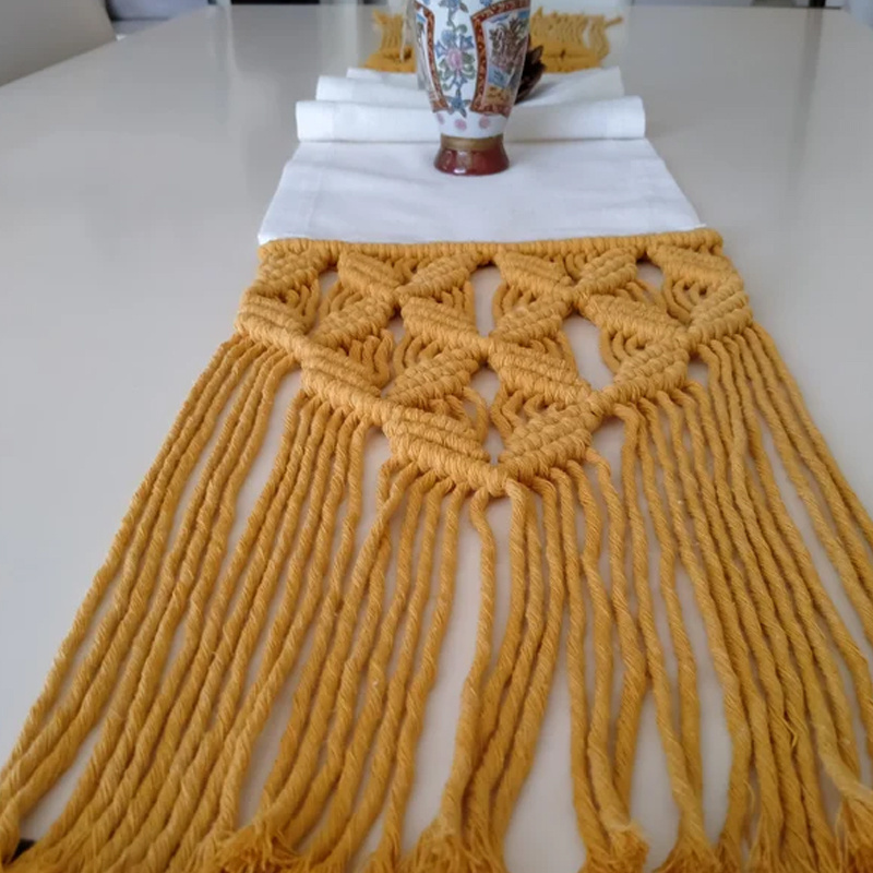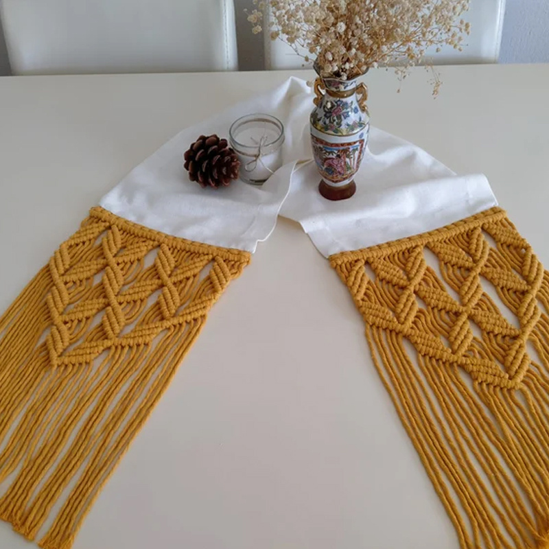 Hot Selling Macrame Linen Cloth Mustard Table Runner, Decor Table Linen Fabric Runner Wholesale in Vietnam