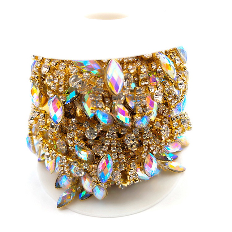 Wholesale Fashion Gold Resin Fringe Trim Sewing On Waist Ornaments Crystal Rhinestone Chain For Bridal Wedding Dress Accessories