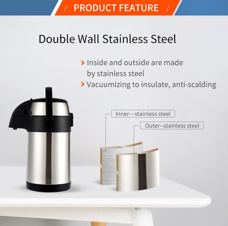 Double walll stainless steel insulated thermal carafe pump dispenser vacuum thermos termos airpot coffee pot