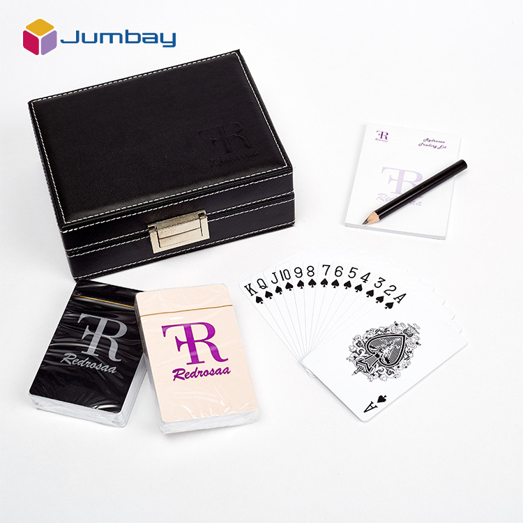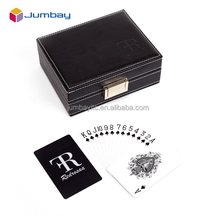 Unique design promotional wooden leather playing cards case top quality pvc plastic poker card