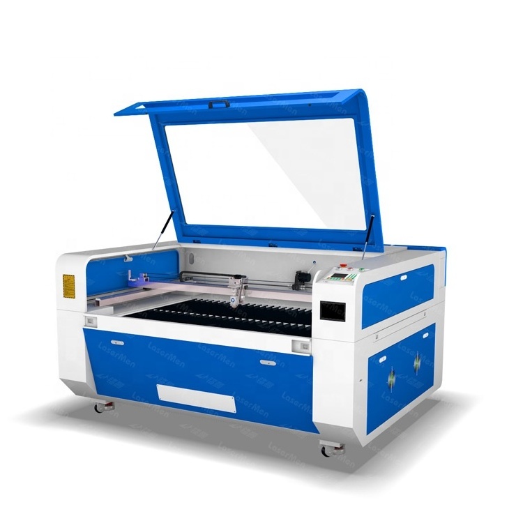 The LM-1390 hybrid co2 laser cutting machine provides a z-axis lifting structure for optional assembly (for use with rotating shafts).