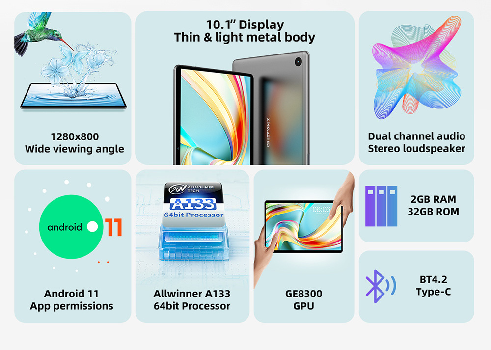 Teclast P25 10.1 inch 1280X800 Student Tablet 2GB RAM 32GB ROM ALLWINNER A133 Quad Core Android 11 Dual Cameras Type-C Tablet PC