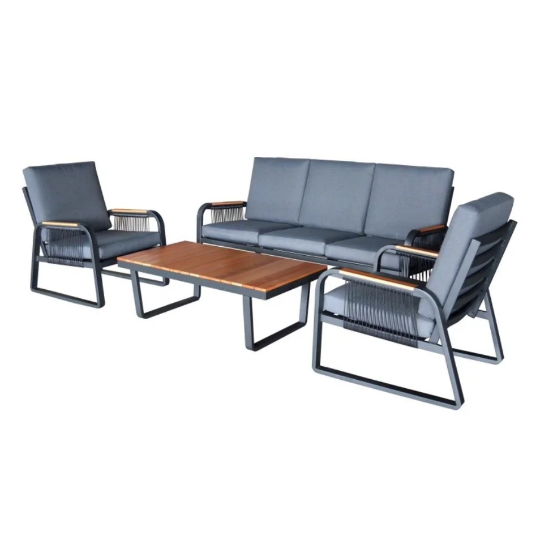 High end new garden patio conversation outdoor aluminum sofa set black metal rope patio 4-piece sofa furniture sofa set