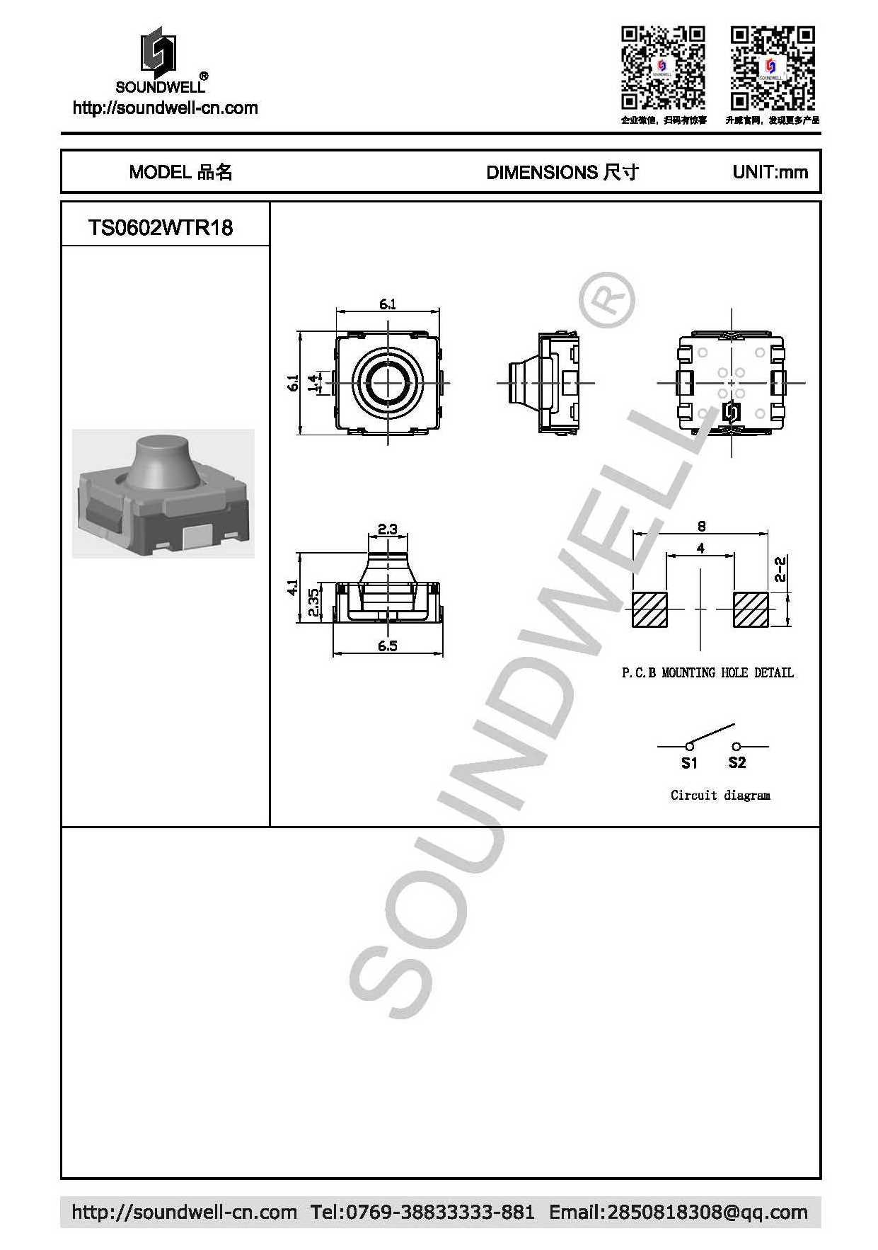 1. Push operating force: 380±45 gf 2. Switch travel: 0.7±0.15mm
