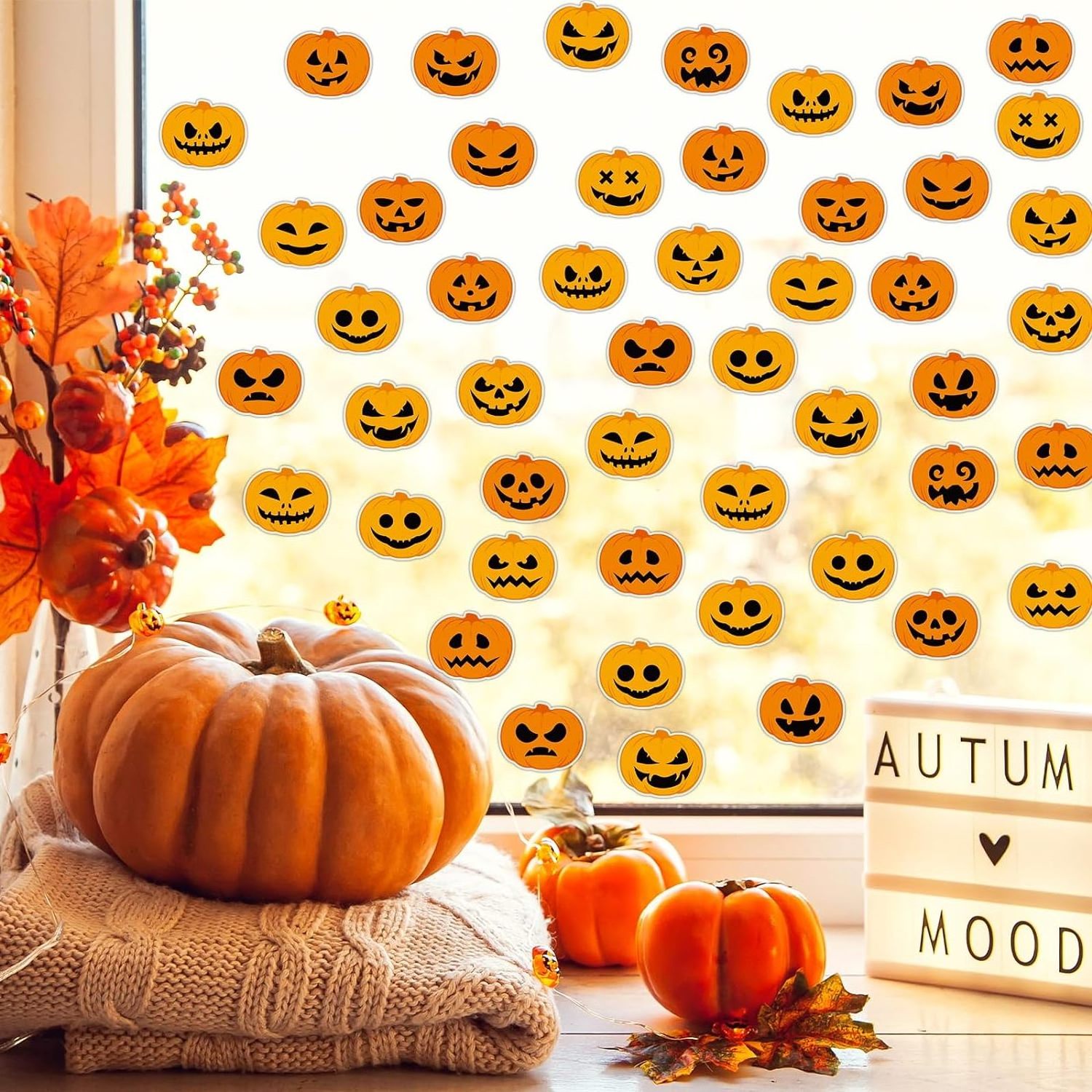 Halloween Pumpkin Thick Gel Sticker Halloween Pumpkin Window Clings Decals for Kids Home Classroom Nursery Halloween Party
