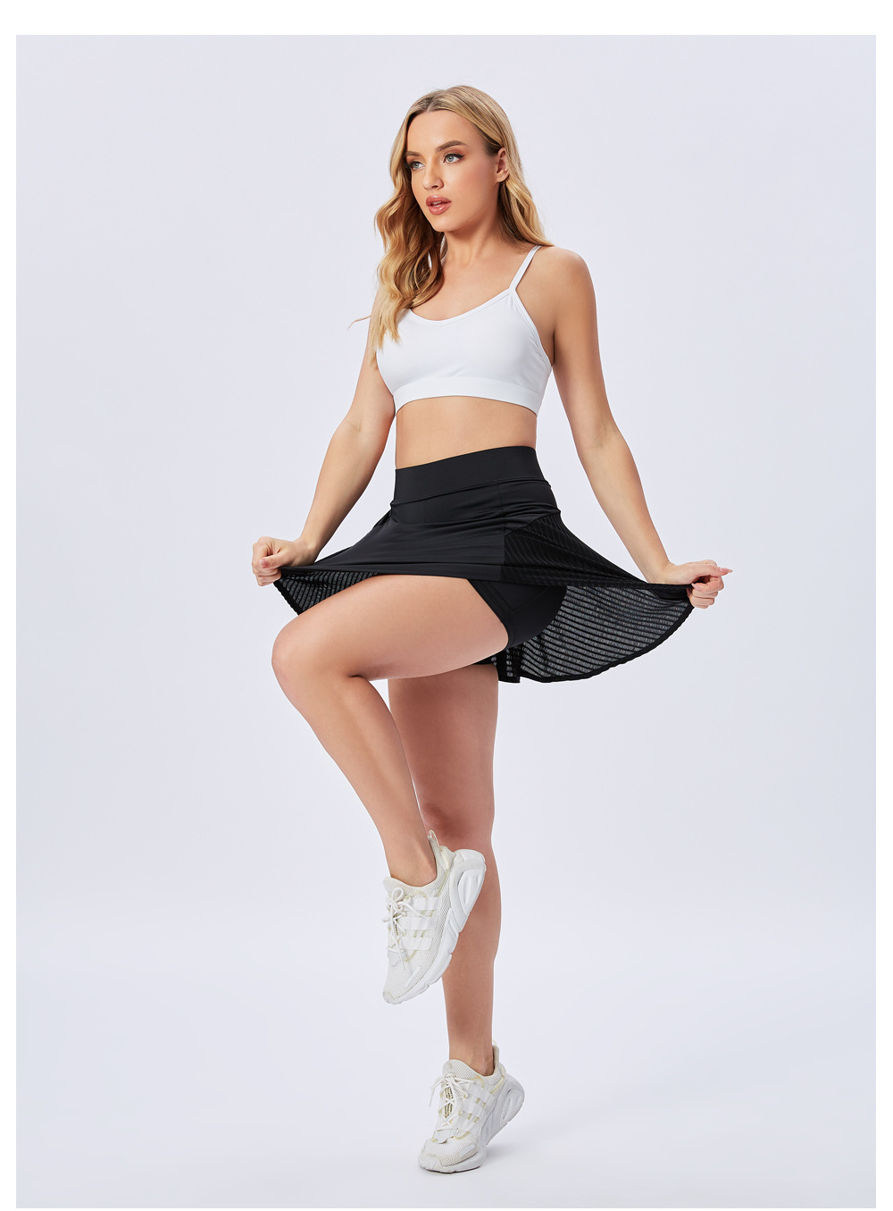 Custom summer New 2022 female breathable Spliced mesh skort set high waist golf tennis skirts with inner shorts pockets