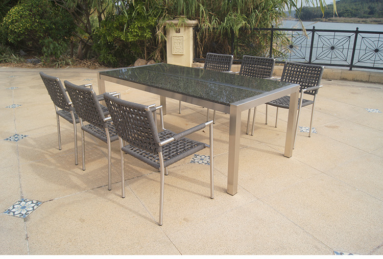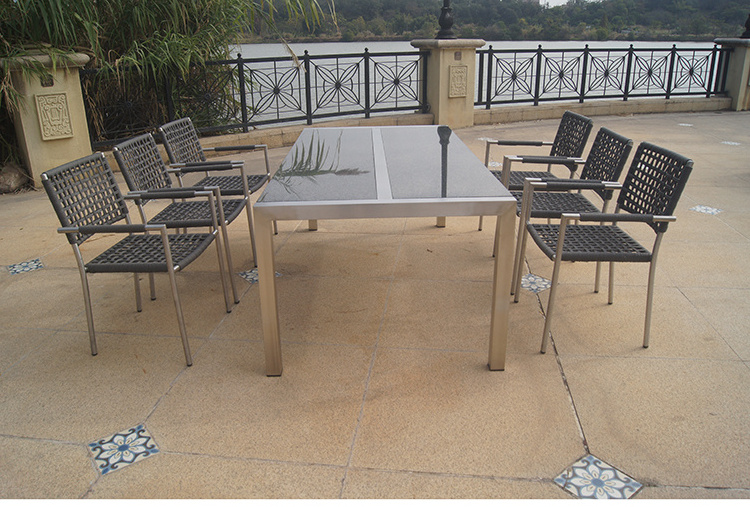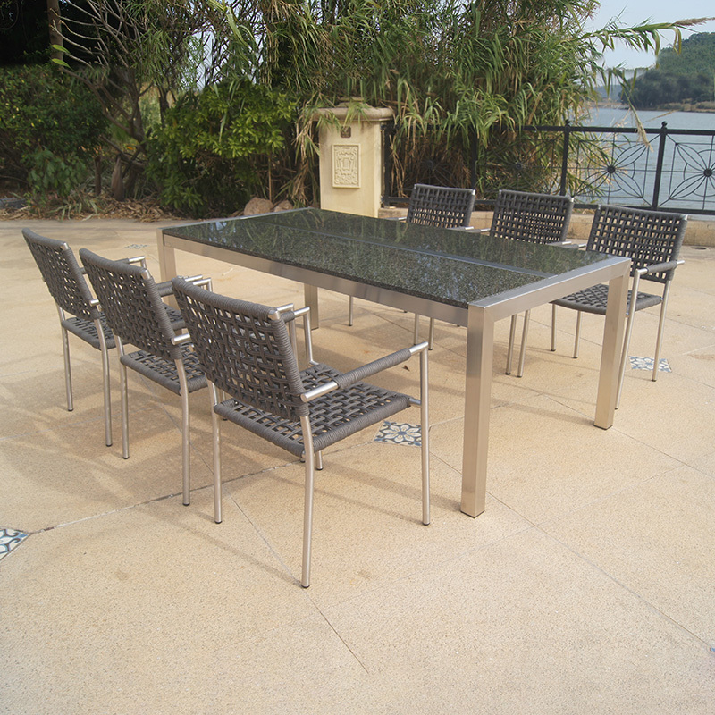 all weather luxury high quality stainless steel frame granite top patio set outdoor furniture