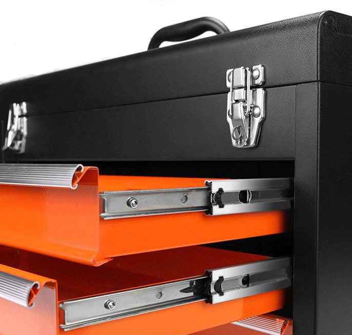 This rolling tool cart has four flexible and secure swivel wheels which make sure easy movement and steady placement.