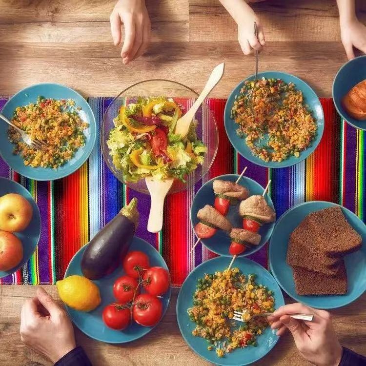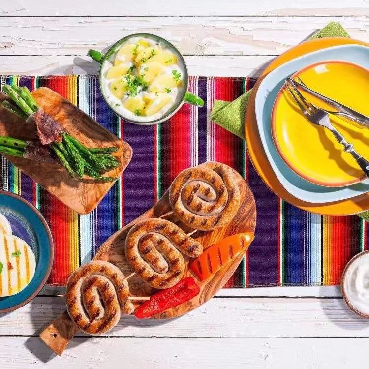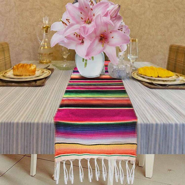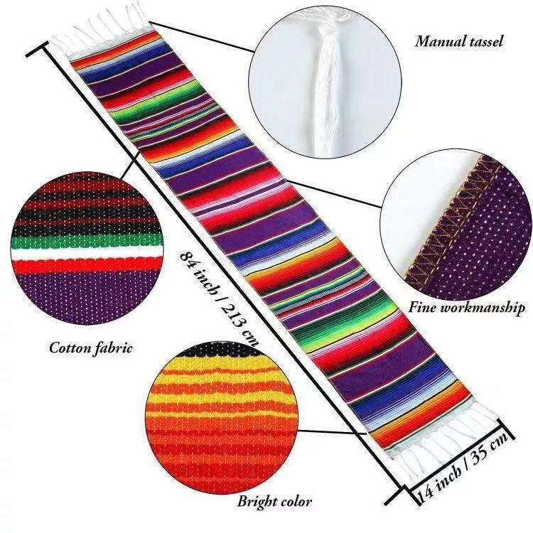 Mexican 100% Cotton yarn-dyed table cloth colorful rainbow wave Table runner