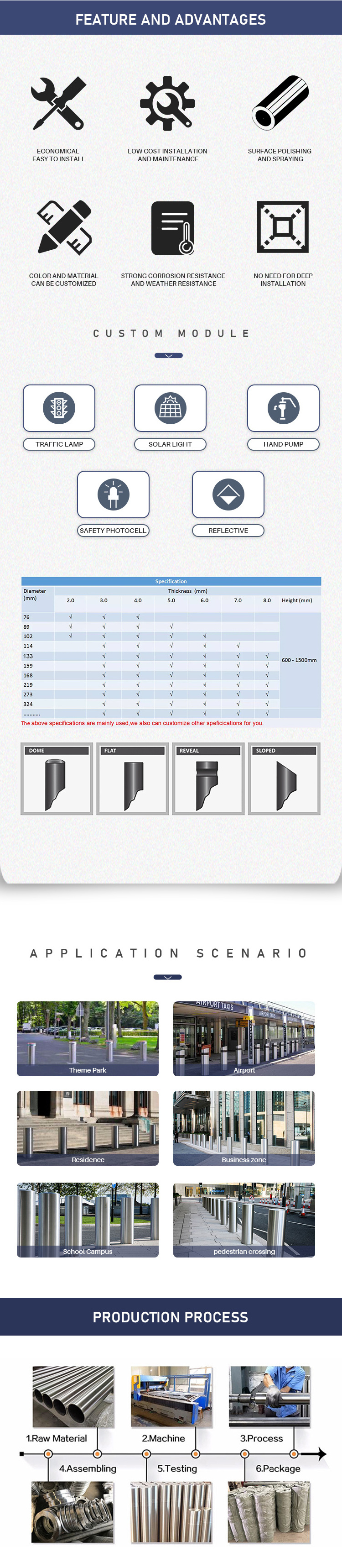 A: We are professional metal bollard, traffic barrier, parking lock, tire killer, road blocker, decoration flagpole manufacturer