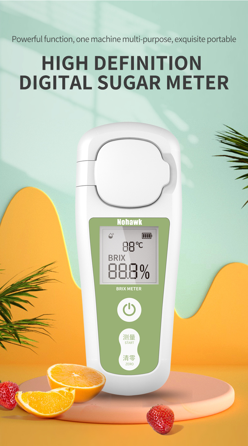 The refractometers is a professional instrument for quickly determining the sugar content of various fruits and fruits, and is suitable for the measurement of almost any juice, food and beverages and other liquids. A refractometer or refractometer for the rapid determination of the concentration or refractive index of sugar-containing and other non-sugar solutions. It adopts LCD large-screen liquid crystal digital display, which is suitable for the measurement of almost any liquid such as juice, food and beverage. It is used in various industries such as agriculture, breeding, wine making, food and beverage processing industries. We can do ODM, OEM according to your any requirment.