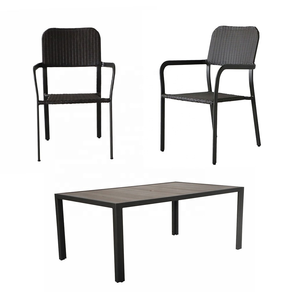Aluminum rattan sectional dining set garden table and stackable chairs KD ps wood patio backyard all weather outdoor furniture