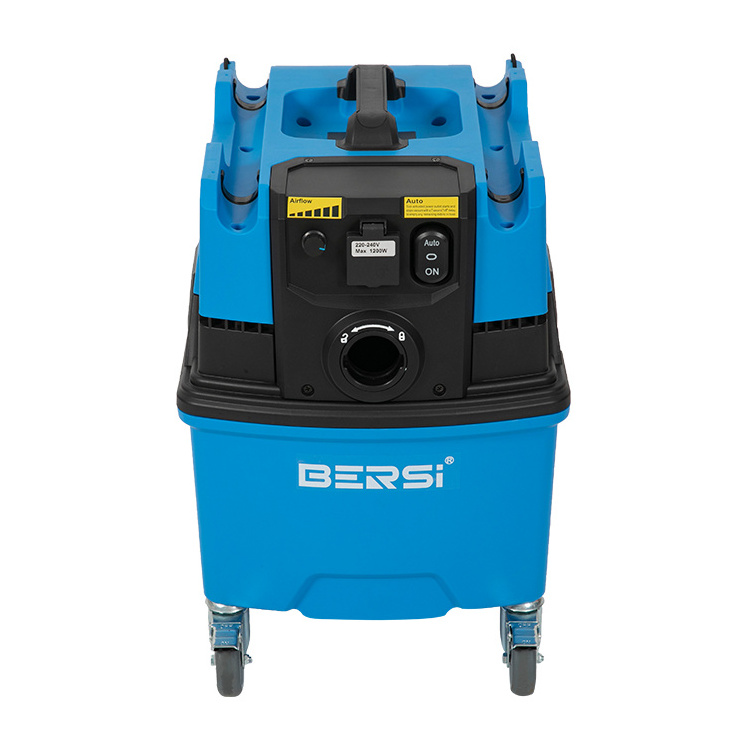 AC150H is a one motor wet and dry HEPA dust extractor with Bersi innovated auto clean system, 38L tank volume. There are 2 filters rotate self clean to maintain high suction always. The HEPA filter captures 99.5% of particles at 0.3 microns. It is a portable and lightweight vacuum cleaner for liquids and dry fine dust both, the machine will shut down automatically when reach to the liquids maximum fill level. Ideal for power tool requires continuous working, especially suited for extracting concrete and rock dust in construction site and workshop.