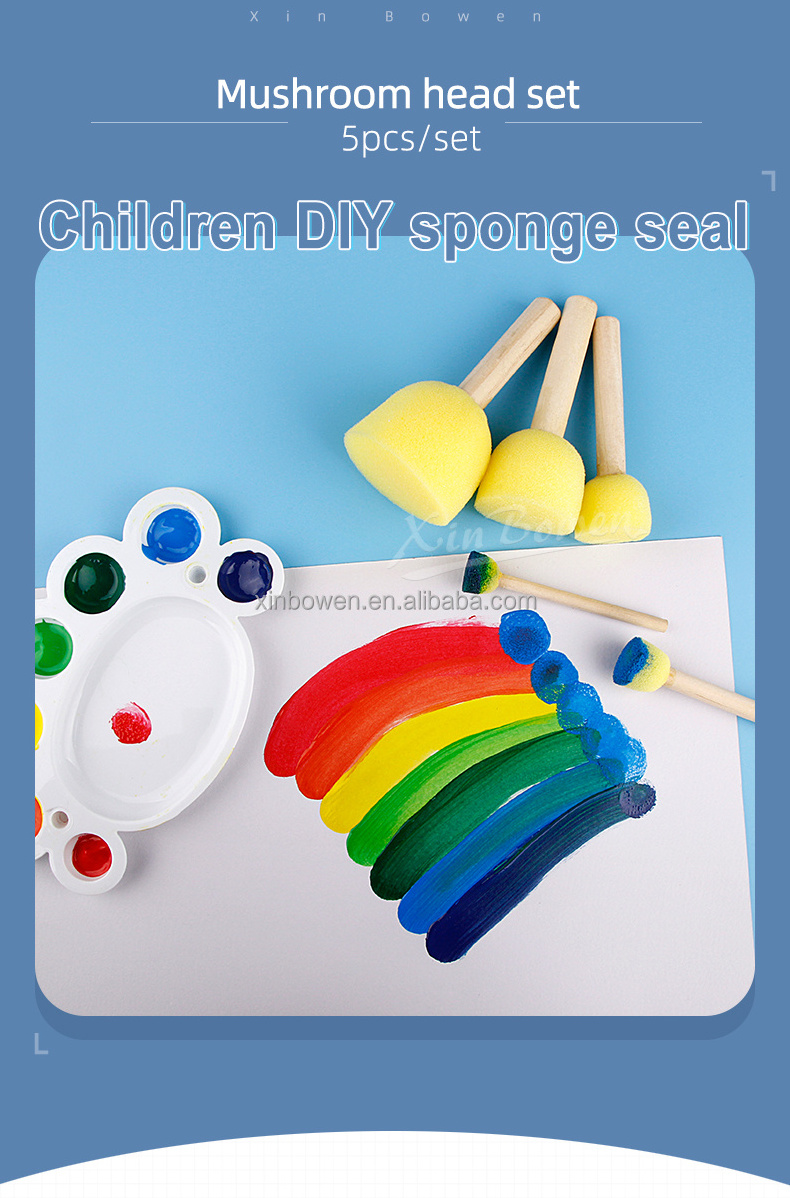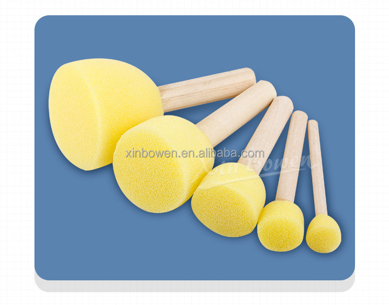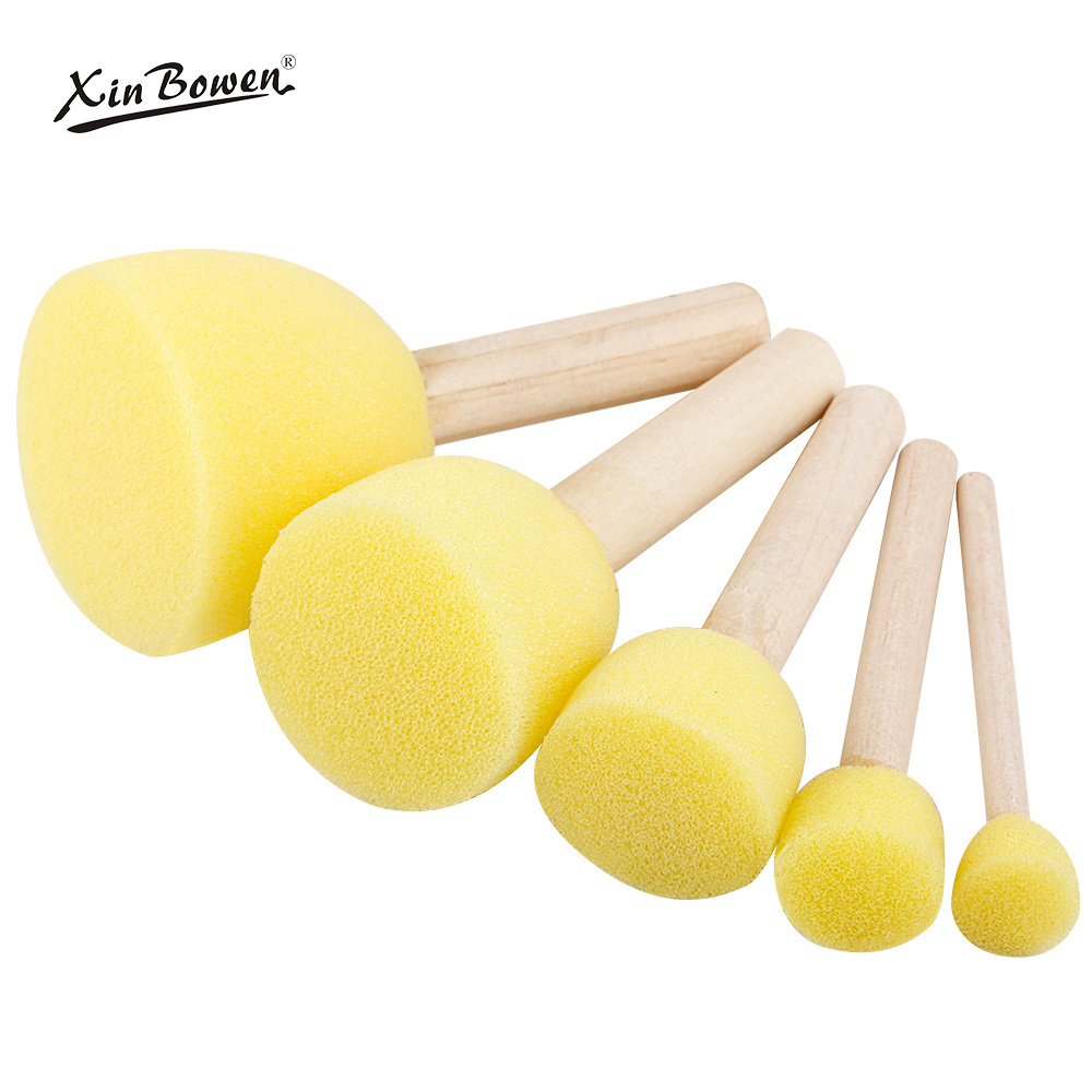 Xin bowen Children Drawing Tools 5 Pieces Diy Painting Toys Yellow Foam Seal Wood Handle Sponge Brush For Kids