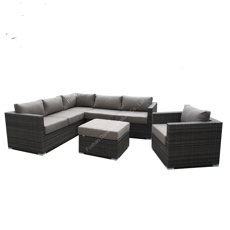 China competitive price sectional aluminum PE rattan outdoor garden set of sofa with cushions