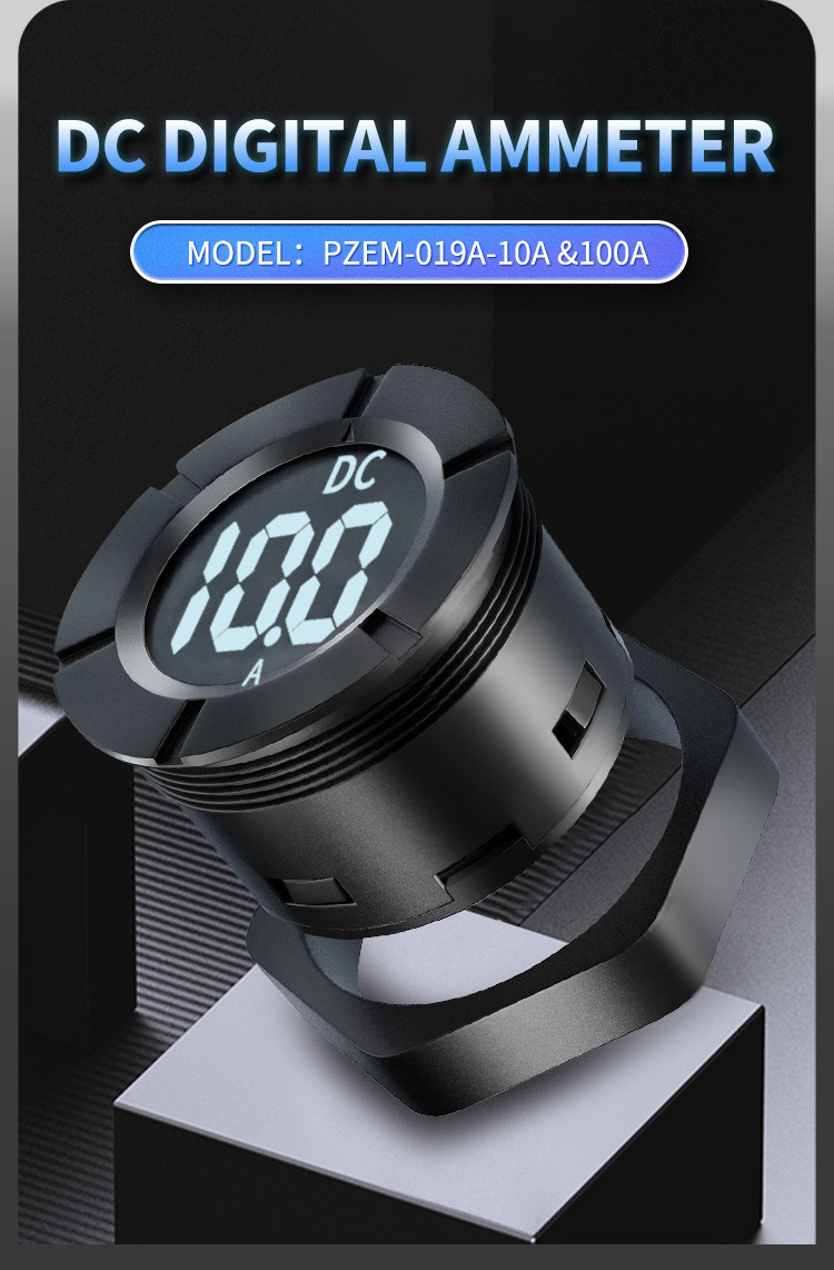 Peacefair PZEM-019A DC 5V 12V 100A Round LCD Digital Ampere Panel Meter Current Meter Smart Ammeter 100A Shunt