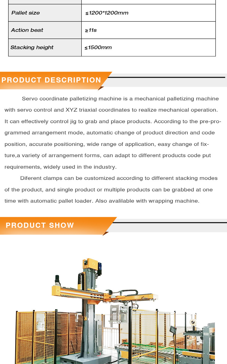 3.Single column type palletizing, small footprint and easy maintenance. .