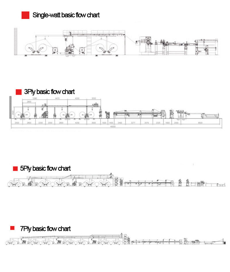 1. Corrugated cardboard production line is the professional advanced equipment for produce 3ply, 5ply, 7ply corrugated cardboard.