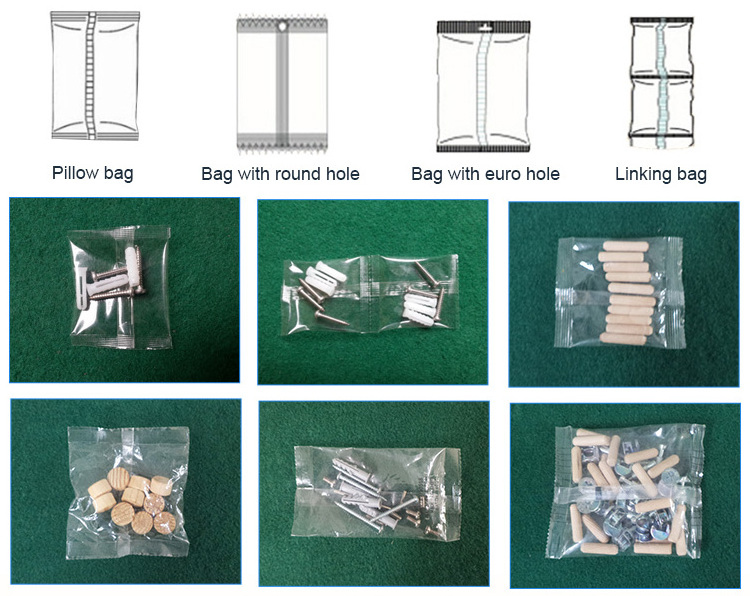 This machine is applicable to single items packing and mixed 2-3 kinds of items packing, operating easily with PLC control system. Firm sealing, smooth and elegant bag shape, high efficiency and durability are preferred elements. Automatic ordering, counting, packing and printing can be offered. Equipped with exhaust device, printer, labeling machine, transfer conveyor and weight checker make it better.