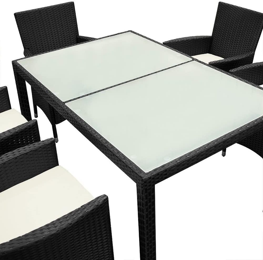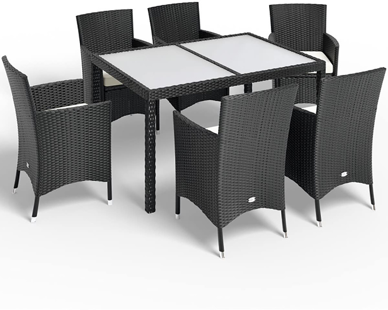 7 pieces poly rattan table and chairs set 7cm strong cushions included