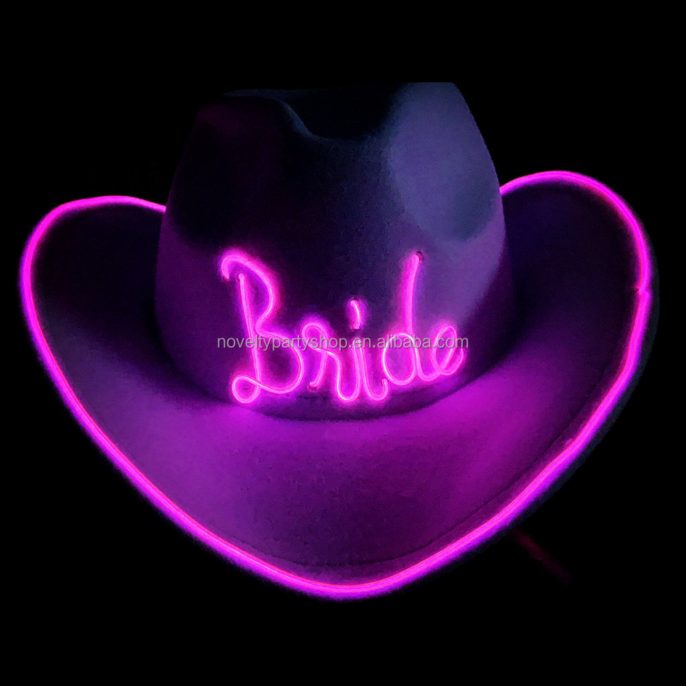 Bachelorette Party Attire light up cowboy hat LED flash Bride hat
