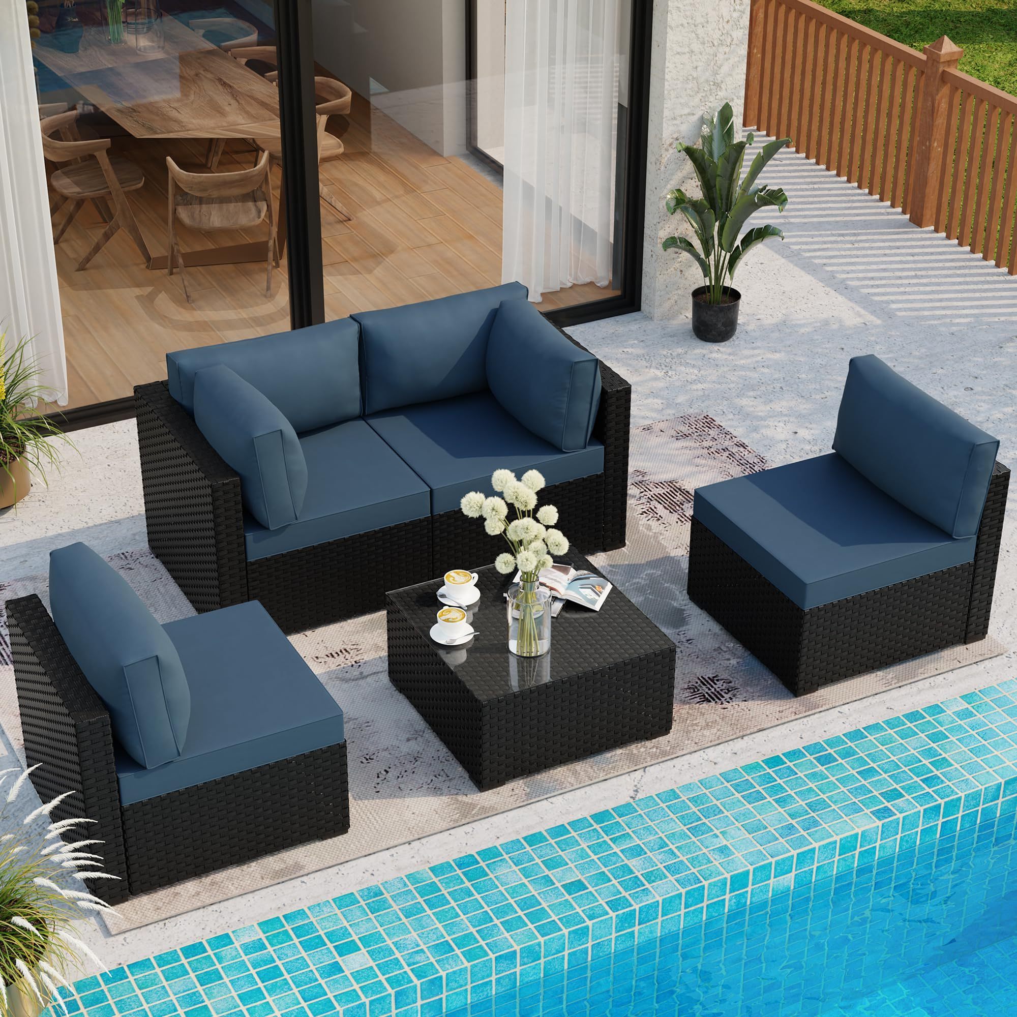 Outdoor Modern PE Rattan 5-Piece Luxurious Garden Rattan Patio Furniture Set for Backyard Porch