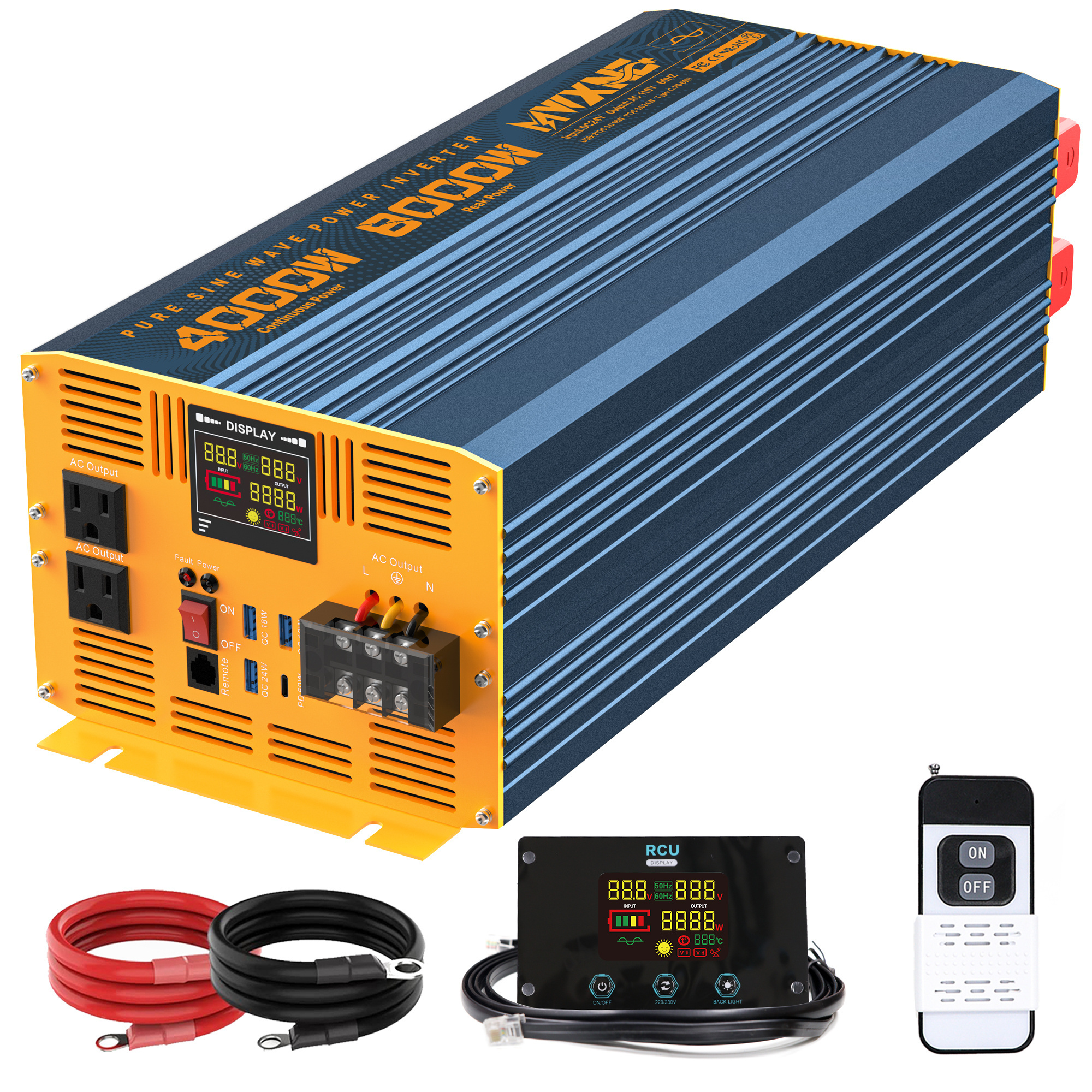 MWXNE team offers 24 months warranty. Package includes 1x 2000W Pure Sine Wave Inverter , 1x User Manual, 2x Battery Cables(1xRed,1xBlack), 1x Wireless Remote Controller, 2x Fuses, 1x Screwdriver, 1x Earth Wire. We provide 24/7 customer service. Please contact us by email if you have any question.