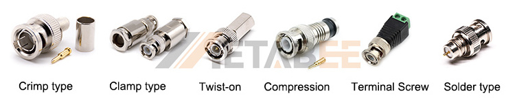 BNC connectors are available in 50 ohm and 75 ohm versions. 50 ohm connectors are typically used for RF applications, while 75 ohm connectors are typically used for video applications.