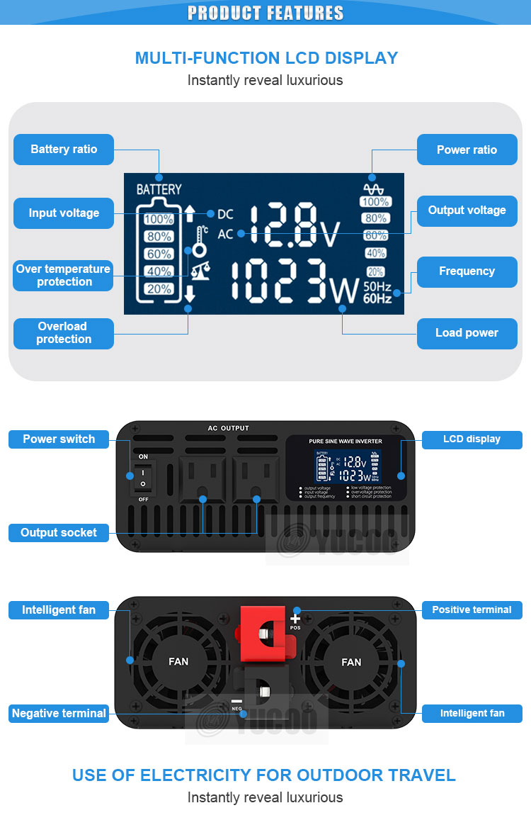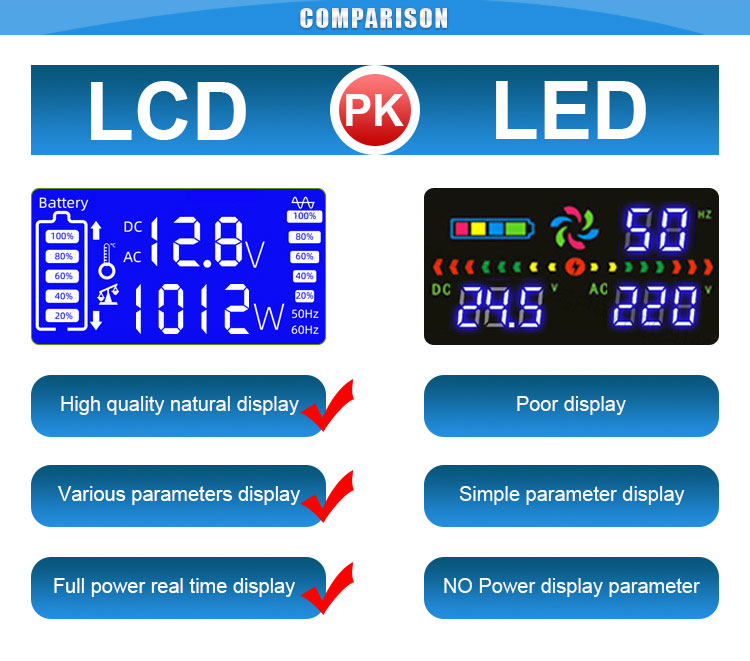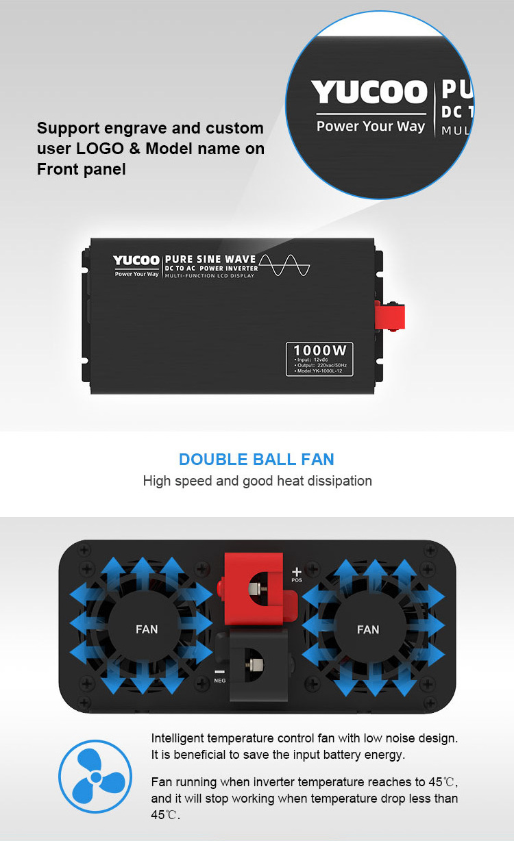 6. Protection: Battery Low Alarm/Battery Shut down/Over Voltage/Over Temp/ Output Short/